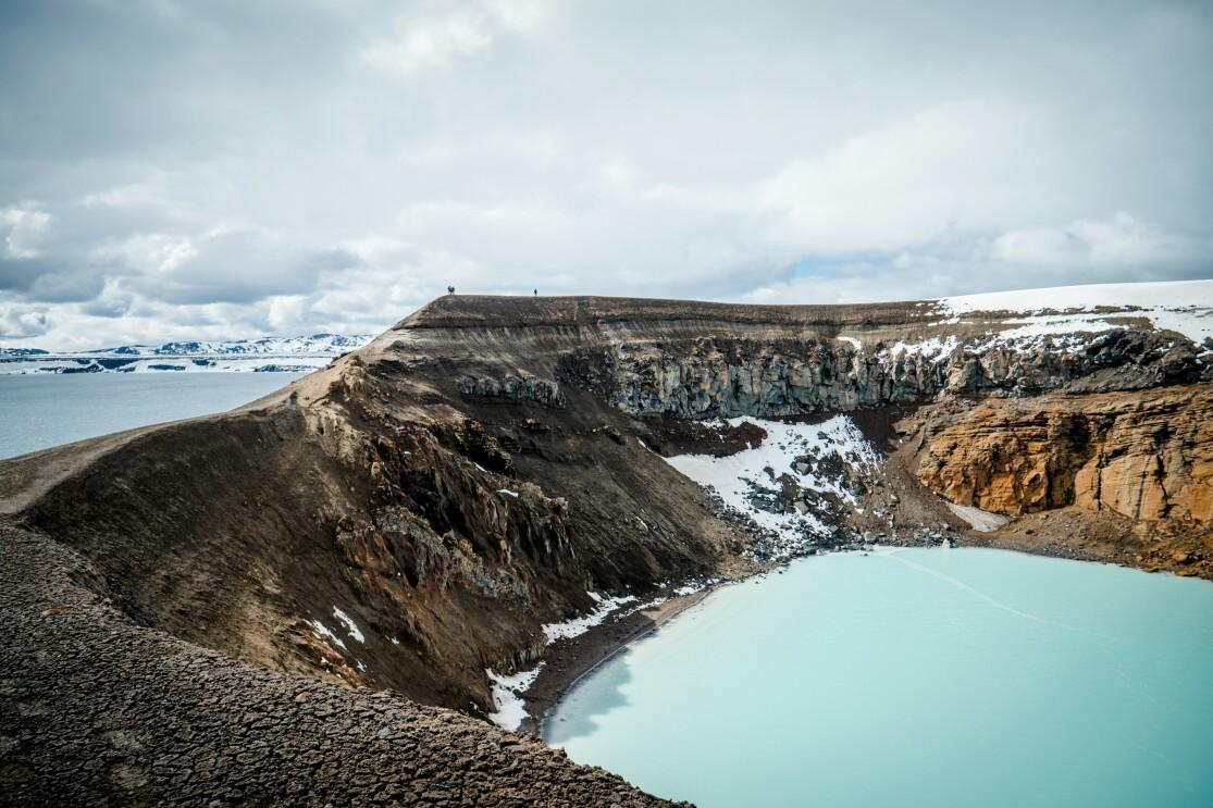 Very close to Öskjuvatn lies Vìti, a crater with warm, milky waters. Unlike Öskjuvatn, its waters are pale green, and this contrast makes the place very photogenic.